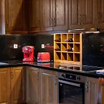 A full kitchen is equipped with coffee/tea making equipment, as well as a microwave and a refrigerator for self-catering purposes.